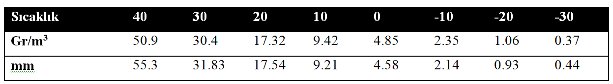 - Havanın su buharı alabilme yeteneğine (sıcaklığa)