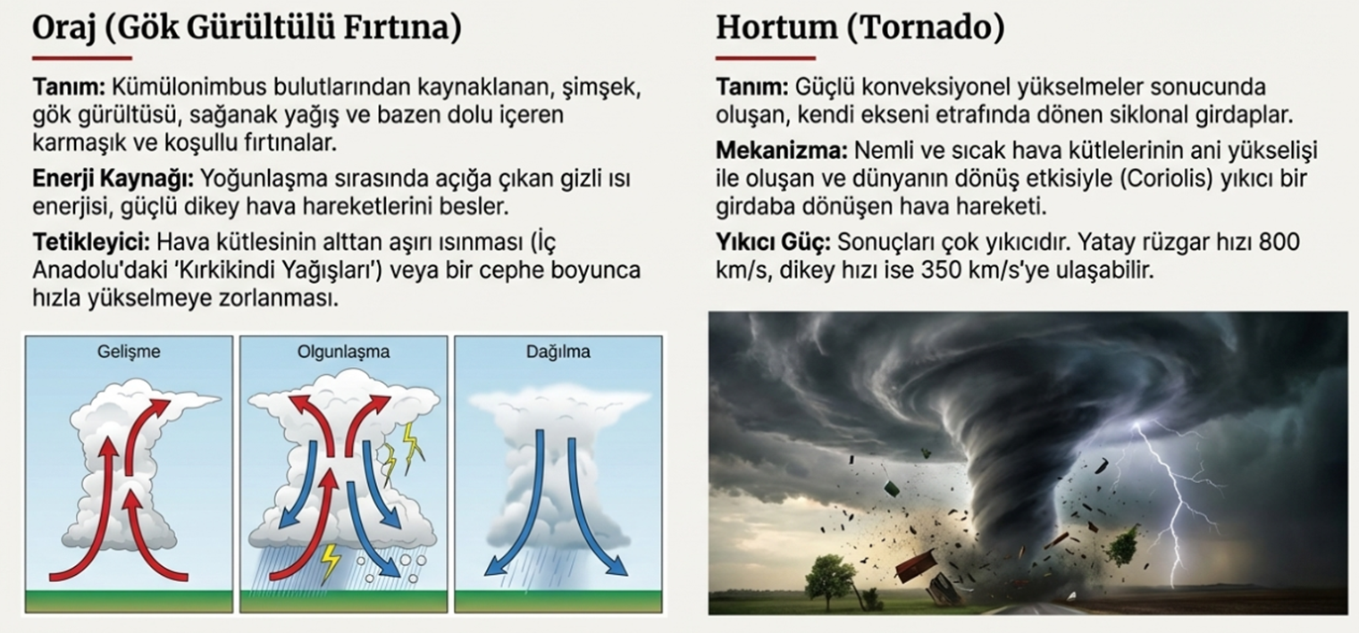 Orajların nedeni olan kümülonimbusların bünyelerinde taşıdığı bu enerji buharlaşmanın yoğunlaşma aşamasında açığa çıkardığı gizli ısı enerjisidir. Ancak şu göz önünde bulundurulmalıdır ki her konveksiyonel yükselme oraj oluşturmayabilir. Çünkü enerji havadaki kararsızlığına denge getirirse oraj ya da hortum oluşmadan konveksiyon çözülür.